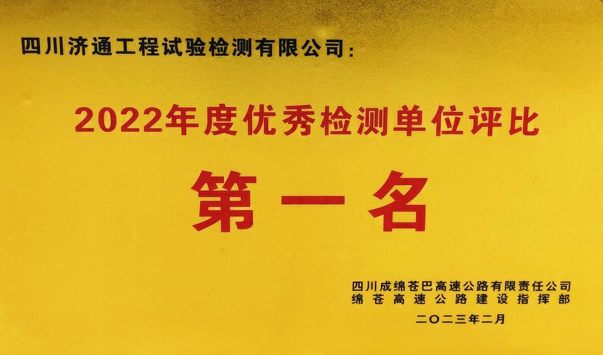 優(yōu)秀檢測(cè)單位評(píng)比第一名