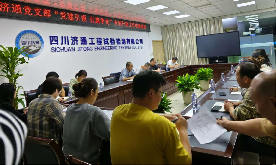 四川濟(jì)通工程試驗(yàn)檢測(cè)有限公司黨支部開(kāi)展“黨建引領(lǐng) 扛旗爭(zhēng)先”專(zhuān)項(xiàng)行動(dòng)工作安排動(dòng)員會(huì)議暨主題黨日活動(dòng)